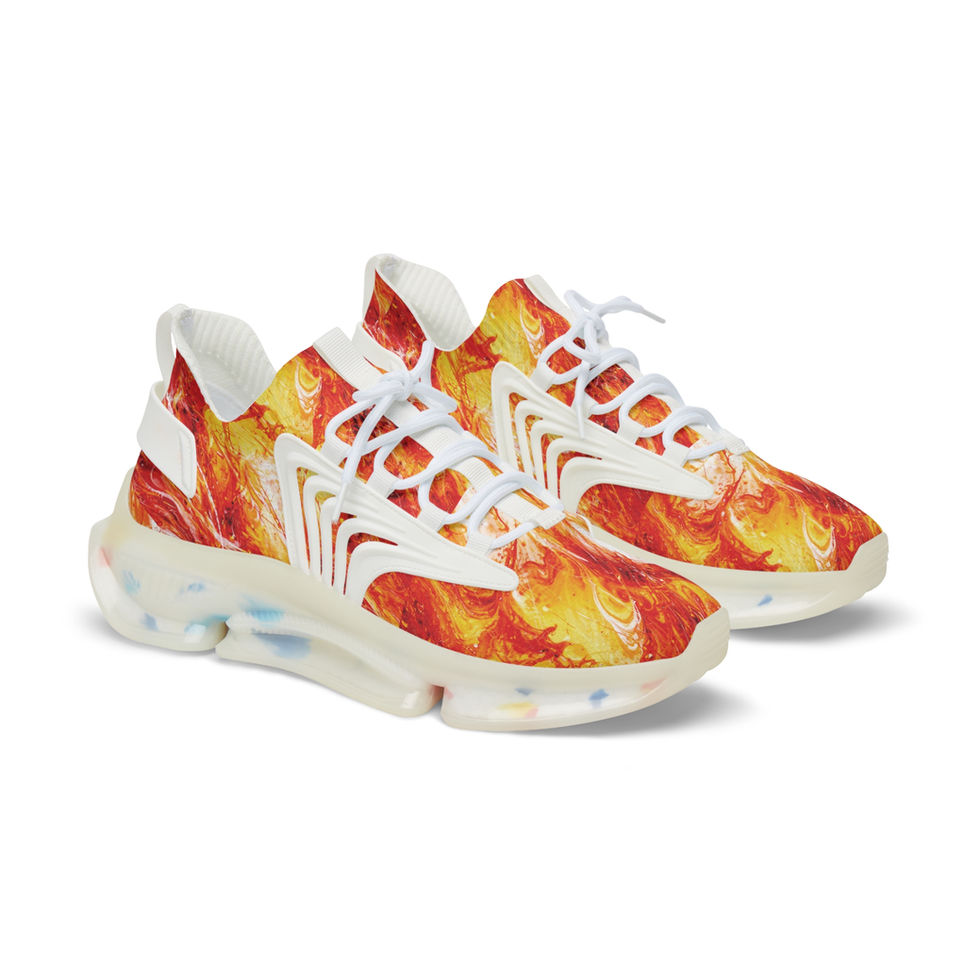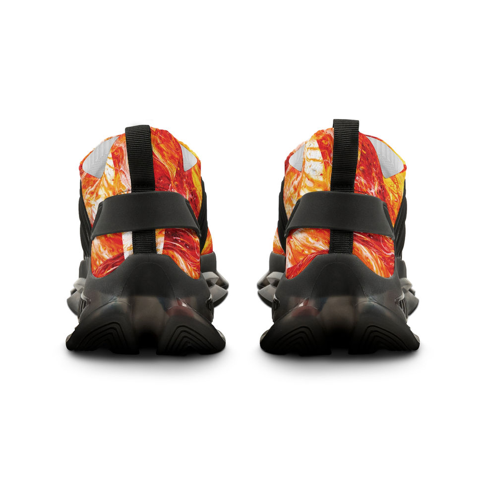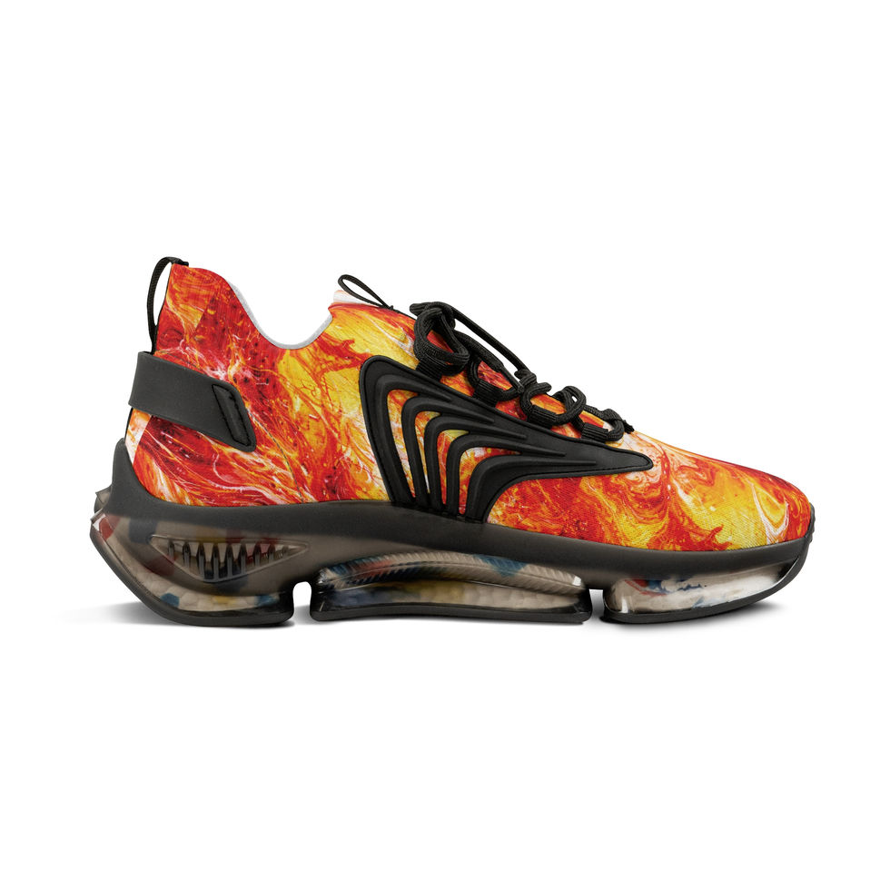 These mesh sneakers bring bold movement to your step with a vibrant, flame-inspired all-over print and athletic construction. Lightweight EVA and TPU in the sole absorb shock while a breathable deodorant memory foam insole keeps feet fresh through long days. The lace-up fit and resilient KPU accents add structure and weather-resistant durability. Visible stitching color matches the sole option for a clean, finished look. Wear them when you want street-ready energy that’s comfortable enough for daily wear and loud enough to start conversations.